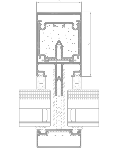 The system is based on a load-bearing frame consisting of vertical aluminum sections (columns) and horizontal (transoms) with a width of 55 mm.