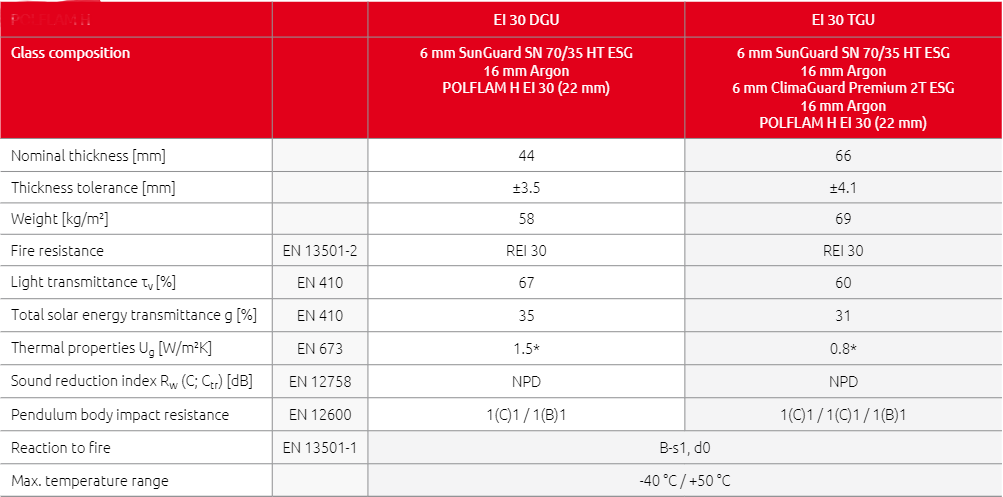 The fire-resistant glass panel of type H, with fire protection ratings EI 30 DGU and EI 30 TGU, is used in roof skylights.
